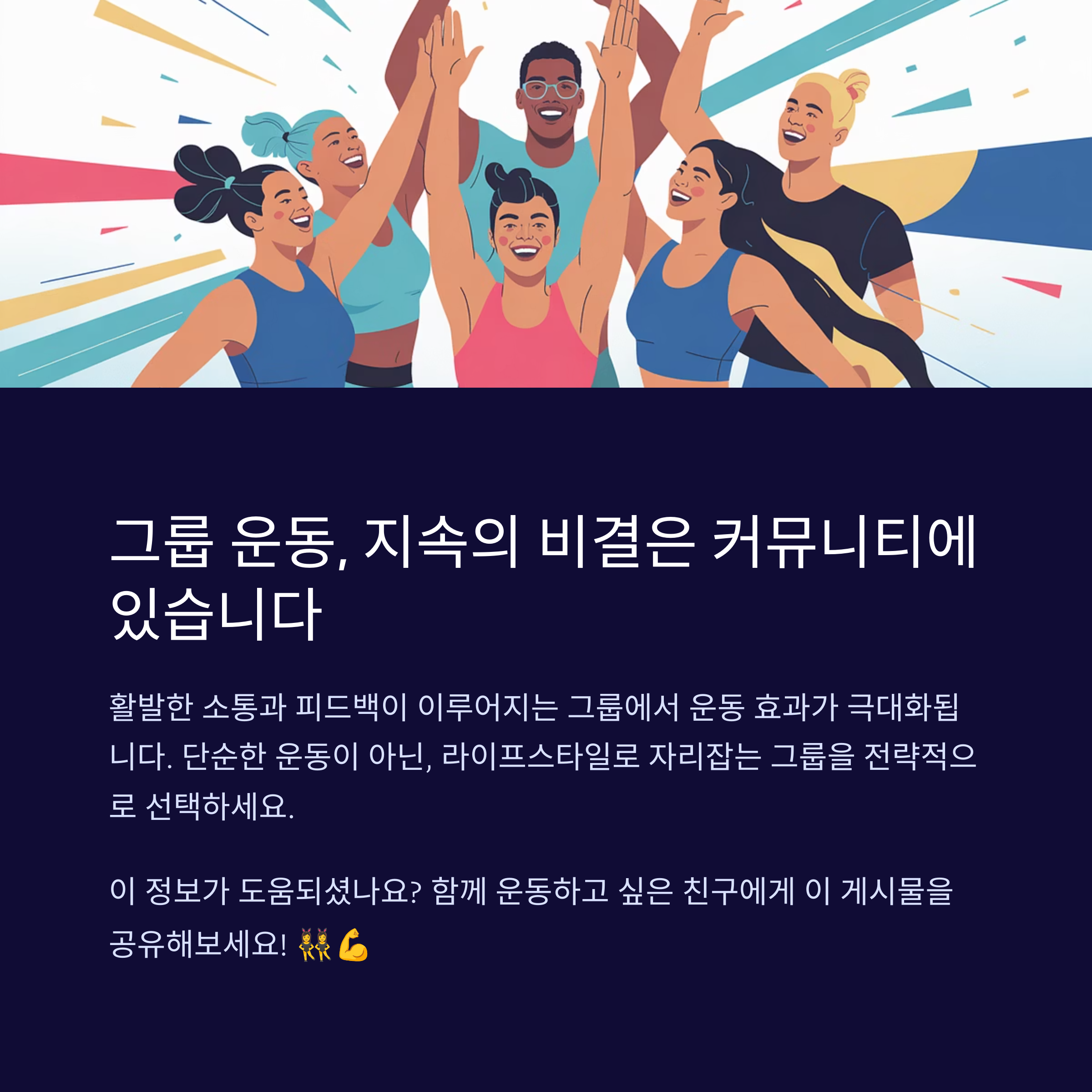 피트니스 그룹에 가입하는 이유는 매우 다양합니다. 가장 기본적인 이유는 동기 부여와 꾸준한 참여를 통해 운동의 지속성을 확보하는 것입니다. 개인 운동을 할 때는 쉽게 포기하게 되거나 루틴을 잃기 쉬운데 반해, 그룹 운동은 규칙적인 참여를 유도하여 습관을 형성하는 데 도움이 됩니다. 또한, 그룹 내 교류를 통해 운동 외적인 사회적 관계까지 확장할 수 있는 기회를 제공합니다. 특히, 운동을 통해 정신 건강을 유지하고자 하는 많은 사람들이 커뮤니티적인 분위기를 중요시하는데, 이는 스트레스 해소와 심리적 안정에 큰 도움이 된다고 합니다. 예를 들어, 매주 같은 날 같은 그룹에 참석하면서 자연스럽게 친분이 생길 수 있습니다. 이로 인해, 성취감과 만족도가 동시에 높아지는 결과를 가져올 수 있답니다. 😊