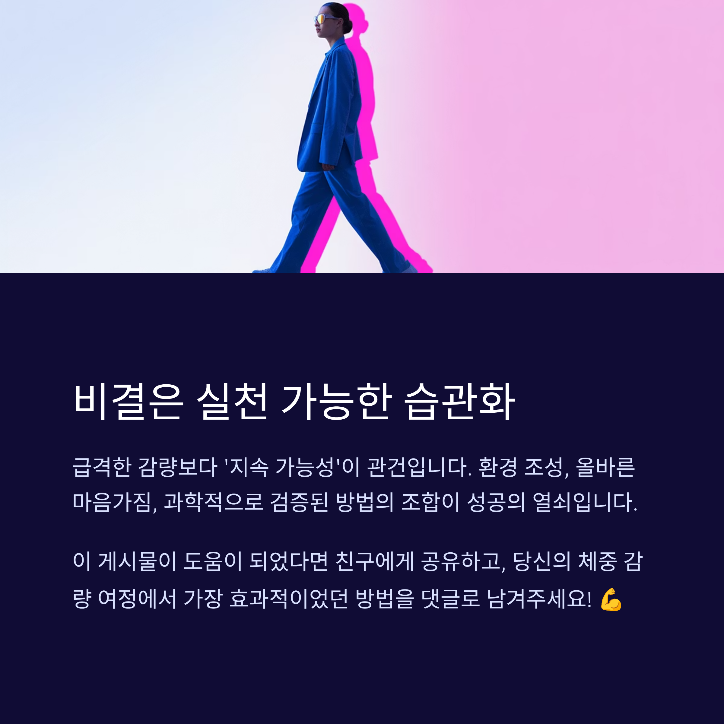 체중 감량은 단기적 목표가 아닙니다. 장기적인 변화를 위해 습관 자체를 개선하는 것이 핵심이에요.