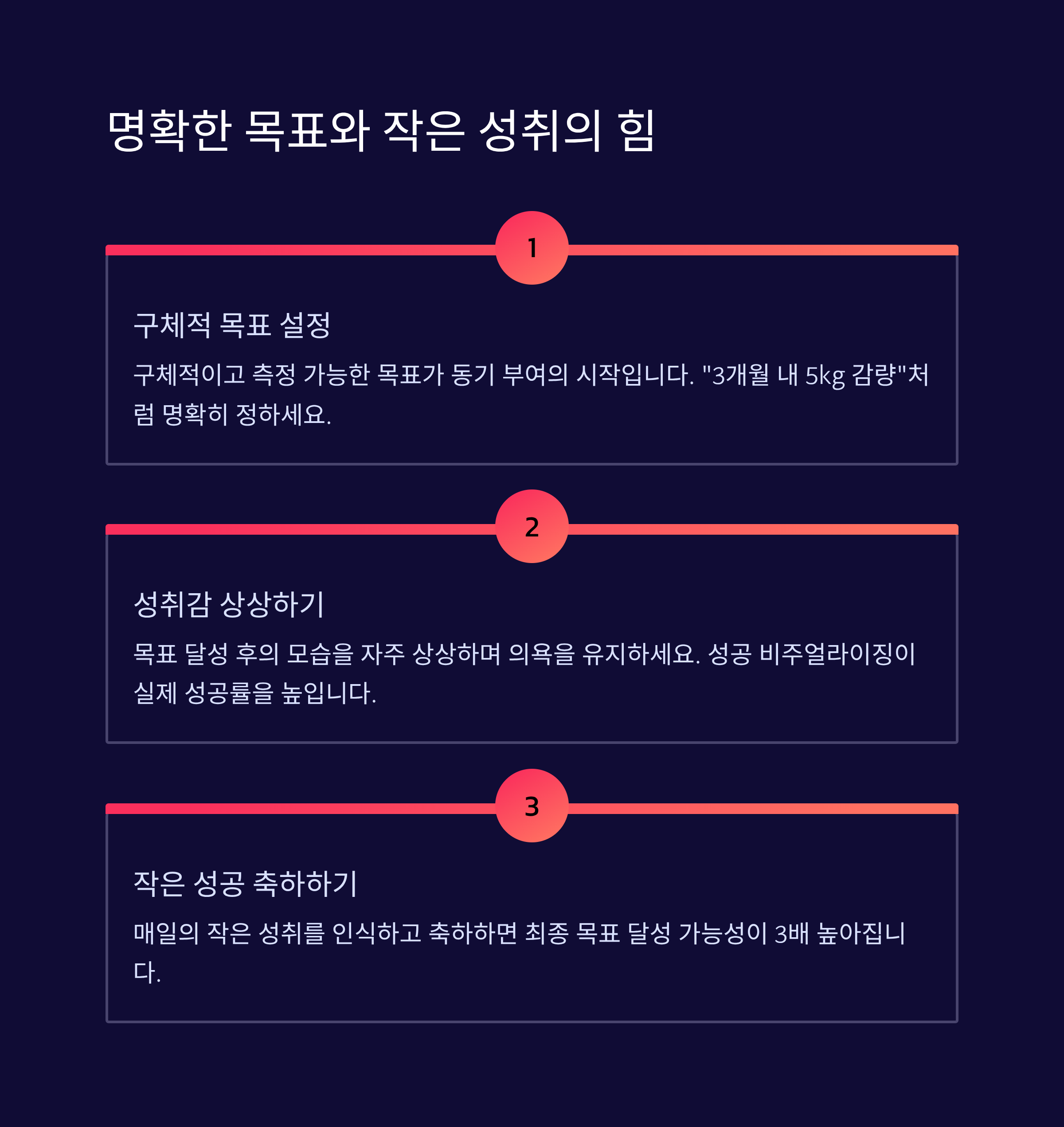 지루한 목표라기보단, 성취감을 느끼는 게 중요하니까요. 작은 목표라도 꾸준히 기록하고 칭찬해 주시면 긍정적인 변화를 느끼실 수 있어요.