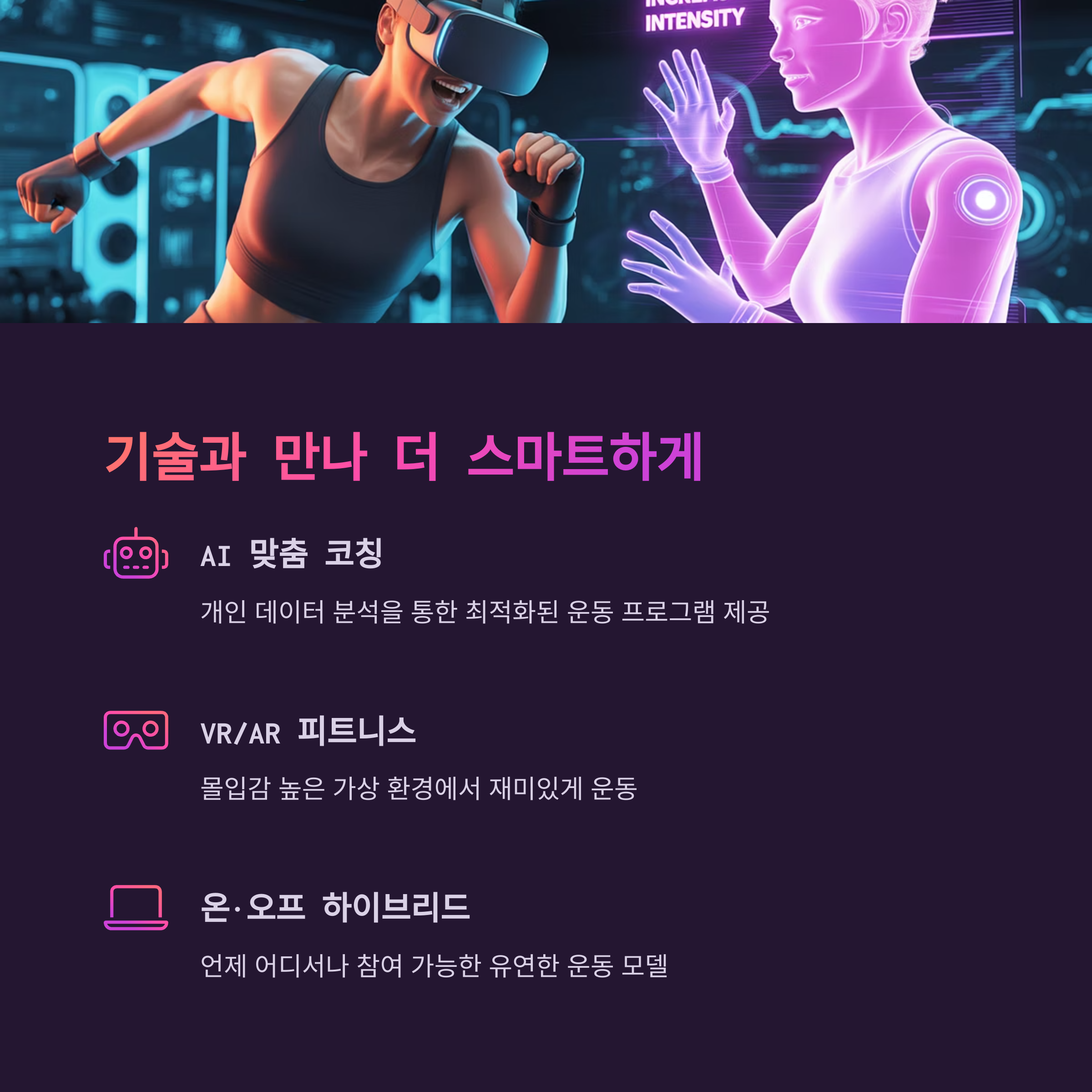 - VR/AR 기술을 통해 체계적 운동 경험 제공